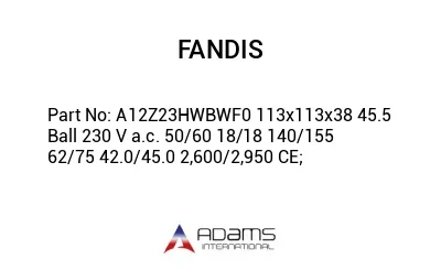 Description: FANDIS - A12Z23HWBWF0 113X113X38 45.5 BALL 230 V A.C. 50/60 18/18 140/155 62/75 42.0/45.0 2,600/2,950 CE;