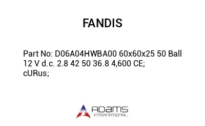 Description: FANDIS - D06A04HWBA00 60X60X25 50 BALL 12 V D.C. 2.8 42 50 36.8 4,600 CE; CURUS;