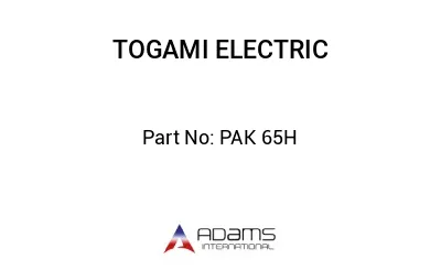 PLEASE CONTACT US TO ORDER TO GET THE BEST PRICE AND DELIVERY FOR TOGAMI ELECTRIC BRANDED PAK 65H YOU MAY ASK FOR SOME OTHER PART NUMBER AS WELL. WE CAN OFFER BEST PRICE AND DELIVERY WITH WIDE PRODUCTS DISTRIBUTION NETWORK IN USA AND THROUGHOUT THE WORLD IN INDUSTRIAL PRODUCTS MARKET.